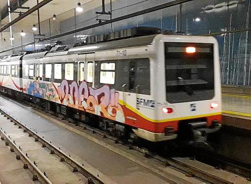 Agentes del Cuerpo Nacional de Policía procedieron a la detención de un hombre, de unos 35 años y nacionalidad española, acusado de pintar los vagones de uno de los trenes del Metro de Palma en la estación Intermodal.